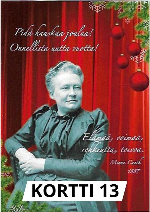 Kortti 13 "Pidä hauskaa joulua! Onnellista uutta vuotta! Elämää, voimaa, rohkeutta, toivoa."