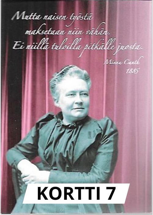 Kortti 7 "Mutta naisen työstä maksetaan niin vähän. Ei niillä tuloilla pitkälle juosta."